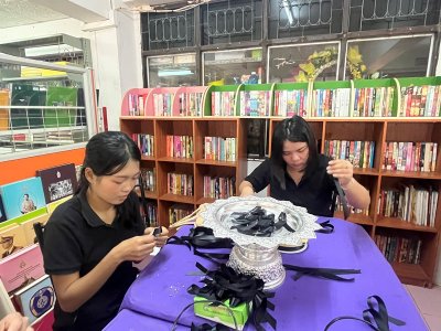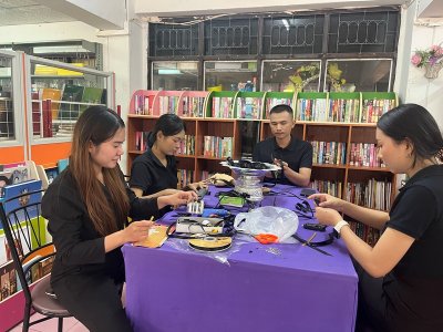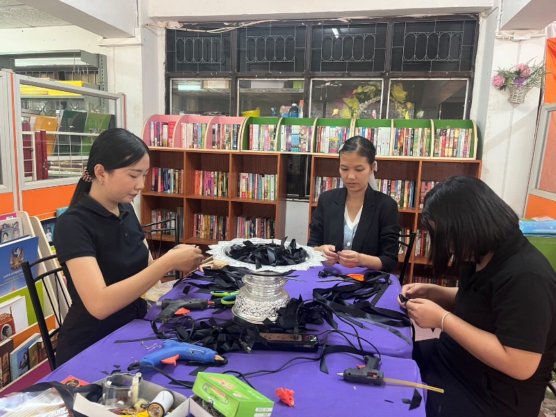 วันที่ 4 พฤศจิกายน 2568 สำนักงาน สกร.ประจำจังหวัดอุดรธานี มอบหมายให้นางอัญรินทร์ เอื้อมอุ่นรักษ์ (ผู้อำนวยการ สกร.ระดับอำเภอพิบูลย์รักษ์) พร้อมด้วยคณะครูและบุคลากรทางการศึกษา ดำเนินการจัดกิจกรรมการสอนทำริบบิ้น เครื่องหมายแสดงความอาลัยสมเด็จพระนางเจ้าสิริกิติ์ พระบรมราชินีนาถ พระบรมราชชนนีพันปีหลวง และแจกจ่ายให้กับประชาชน จำนวน 120 ชิ้น ณ ศกร.ตำบลทั้ง 3 แห่ง และห้องสมุดประชาชนอำเภอพิบูลย์รักษ์ จังหวัดอุดรธานี