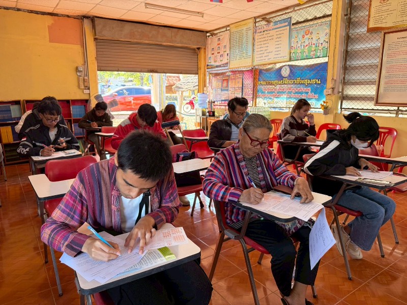 โครงการศูนย์ฝึกอาชีพชุมชน หลักสูตรการแปรรูปผลิตภัณฑ์ผ้ามัดหมี่ย้อมคราม (การทำพวงกุญแจ, เข็มกลัดดอกไม้) ประจำปีงบประมาณ พ.ศ. 2569