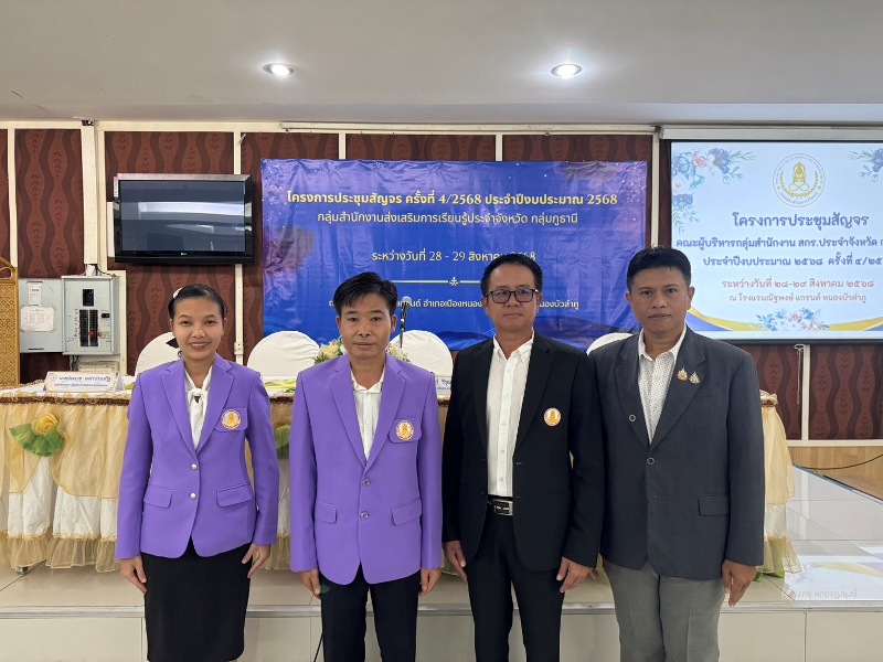 วันที่ 28 สิงหาคม 2568 นางอัญรินทร์ เอื้อมอุ่นรักษ์ (ผู้อำนวยการ สกร.ระดับอำเภอพิบูลย์รักษ์) มอบหมายให้นางสาวศศิธร อกอุ่น (ครู) สกร.ระดับอำเภอพิบูลย์รักษ์ เข้าร่วมการประชุมสัญจร ครั้งที่ 4/2568 ประจำปีงบประมาณ พ.ศ. 2568 กลุ่มสำนักงาน สกร.ประจำจังหวัดกลุ่มภูธานี โดยมีวัตถุประสงค์เพื่อเสริมสร้างความร่วมมือระหว่างหน่วยงานในกลุ่มภูธานี แลกเปลี่ยนองค์ความรู้ และแนวทางการดำเนินงานด้านการส่งเสริมการเรียนรู้ตลอดชีวิตให้มีประสิทธิภาพและสอดคล้องกับบริบทของพื้นที่และมอบนโยบายการดำเนินงานที่เน้นการบูรณาการระหว่างภาคส่วนต่าง ๆ เพื่อขับเคลื่อนการเรียนรู้ในระดับจังหวัดอย่างเป็นระบบ และมีการนำเสนอผลการดำเนินงานที่ผ่านมาในแต่ละจังหวัด การแลกเปลี่ยนแนวปฏิบัติที่ดี และการระดมความคิดเห็นเพื่อกำหนดแนวทางการพัฒนางานส่งเสริมการเรียนรู้ในปีงบประมาณถัดไป โดยมีคณะผู้บริหาร ข้าราชการครู และบุคลากรทางการศึกษาจากจังหวัดต่าง ๆ ในกลุ่มภูธานีเข้าร่วมประชุมอย่างพร้อมเพรียง การประชุมครั้งนี้ถือเป็นเวทีสำคัญในการสร้างเครือข่ายความร่วมมือระหว่างจังหวัด และเป็นกลไกในการผลักดันนโยบายด้านการเรียนรู้ตลอดชีวิตให้เกิดผลเป็นรูปธรรมในระดับพื้นที่ อันจะนำไปสู่การพัฒนาคุณภาพชีวิตของประชาชนอย่างยั่งยืนณ ห้องประชุมชวนพิศ โรงแรมณัฐพงษ์แกรนด์ อำเภอเมืองหนองบัวลำภู จังหวัดหนองบัวลำภู