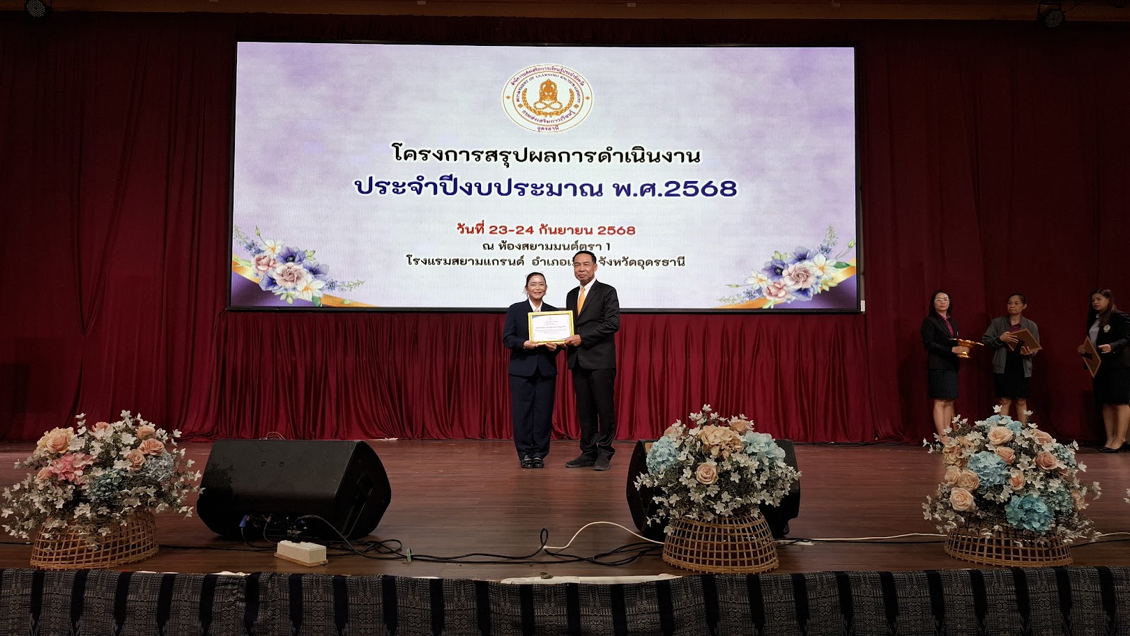 วันที่ 24 กันยายน 2568 นางอัญรินทร์ เอื้อมอุ่นรักษ์ (ผู้อำนวยการ สกร.ระดับอำเภอพิบูลย์รักษ์)พร้อมด้วยคณะครูและบุคลากรทางการศึกษา เข้าร่วมโครงการสรุปผลการดำเนินงาน ประจำปีงบประมาณ พ.ศ. 2568 สำนักงานส่งเสริมการเรียนรู้ประจำจังหวัดอุดรธานีณ ห้องสยามมนต์ตรา 1 โรงแรมสยามแกรนด์ อำเภอเมือง จังหวัดอุดรธานี