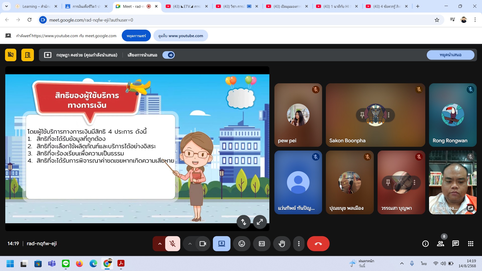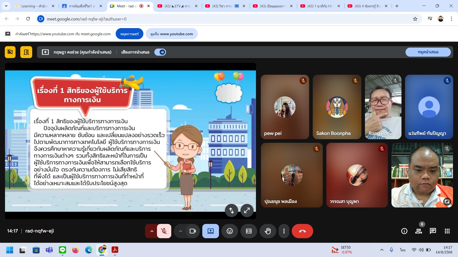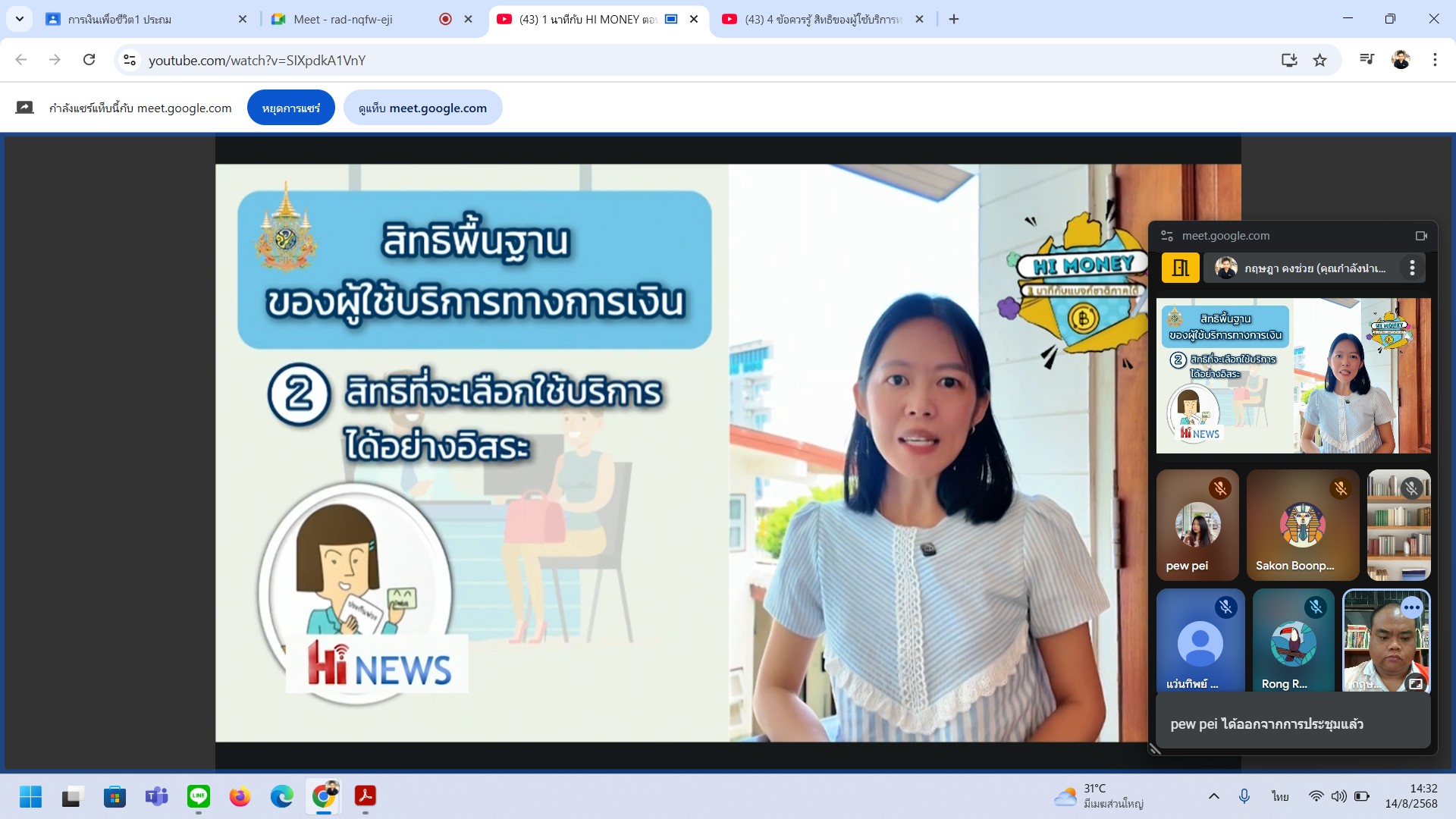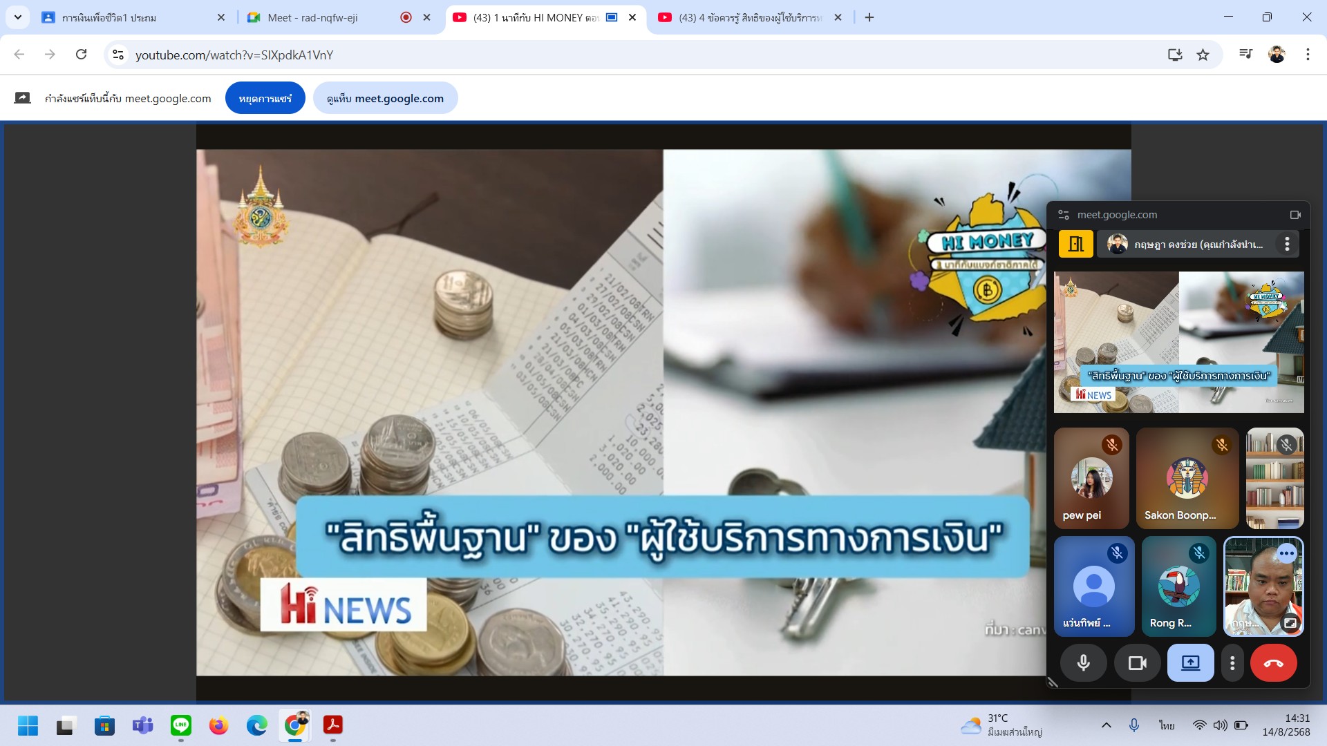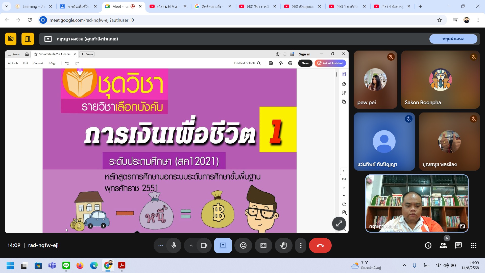 วันที่ 14 สิงหาคม 2568 นางอัญรินทร์ เอื้อมอุ่นรักษ์ (ผู้อำนวยการ สกร.ระดับอำเภอพิบูลย์รักษ์) มอบหมายให้นายกฤษฎา คงช่วย (ครู ศรช.) ดำเนินการจัดการเรียนการสอน (รูปแบบออนไลน์ผ่าน Google Meet) วิชาการเงินเพื่อชีวิต 1 ประถมศึกษา หน่วยการเรียนรู้ที่ 4 สิทธิและหน้าที่ของผู้ใช้บริการทางการเงิน เรื่องที่ 1 สิทธิของผู้ใช้บริการทางการเงิน ประจำภาคเรียนที่ 1 ประจำปีการศึกษา 2568 ณ ศูนย์ส่งเสริมการเรียนรู้ระดับอำเภอพิบูลย์รักษ์ จังหวัดอุดรธานี